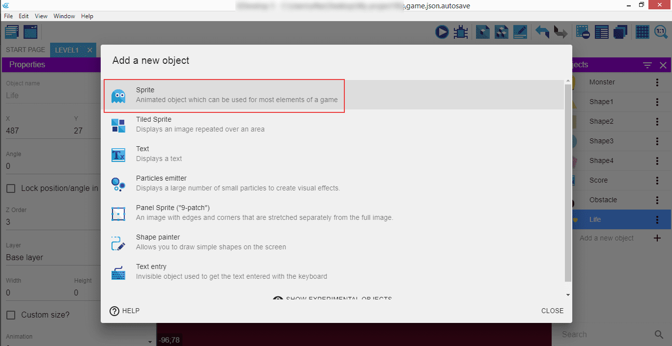 Ajoutons un nouvel objet, qui sera à nouveau un sprite.