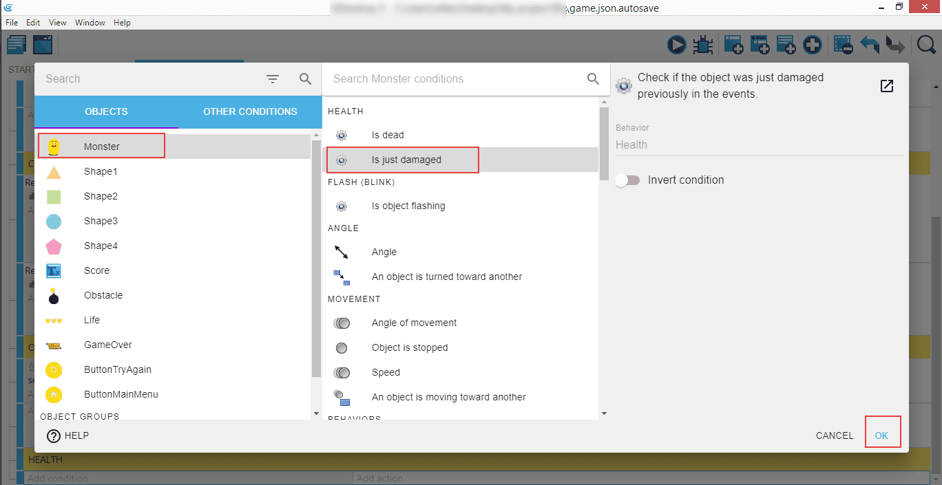 Sélectionnez Monster, puis Is just damaged (Vient juste d'être endommagé) et OK.