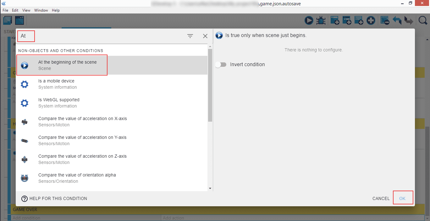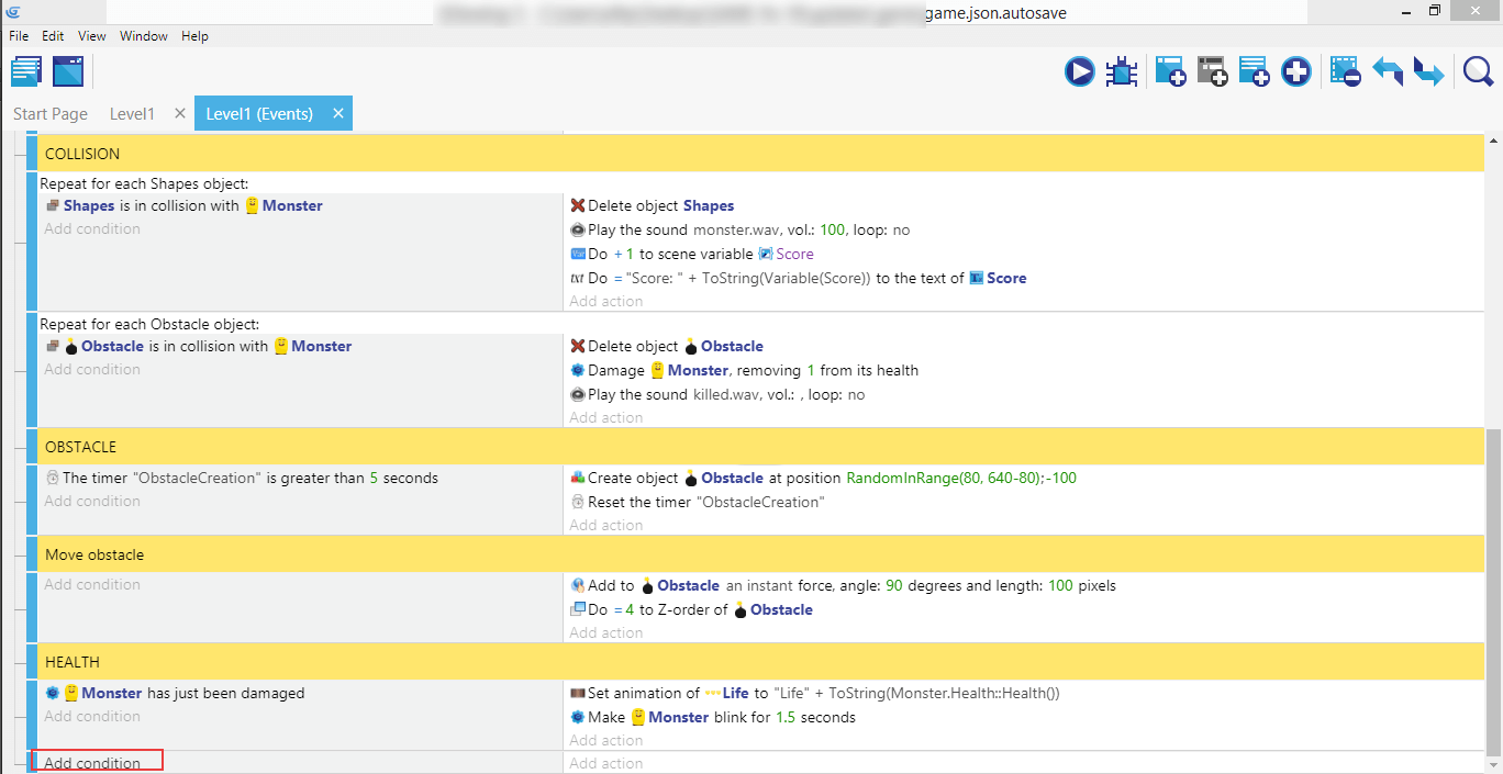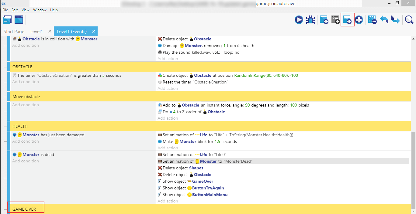 Créez un nouveau commentaire appelé Game Over, un nouvel événement et ajoutez-y une condition.