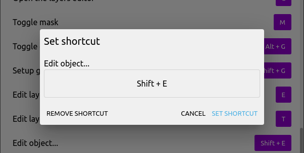 Some commands/shortcuts can have sub-sections (Ex: Edit Objects)