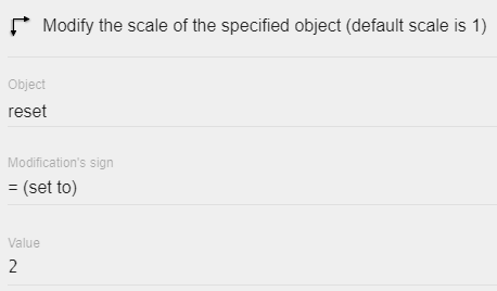 - Scaling of the object can be changed. There are three options: "Scale" (constrains proportions to scale on both X and Y axis), "Scale on X axis" (width), and "Scale on Y axis" (height).
