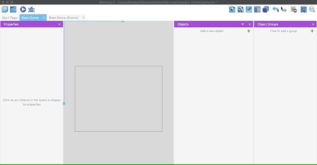 This tutorial will help you to begin to use GDevelop. You will create a simple space shooter game where the player controls a spaceship and shoots enemies, and avoids meteors in space. Note that you can read the Getting Started page to get an overview of the software: it explains the main concepts and describes the interface of GDevelop.