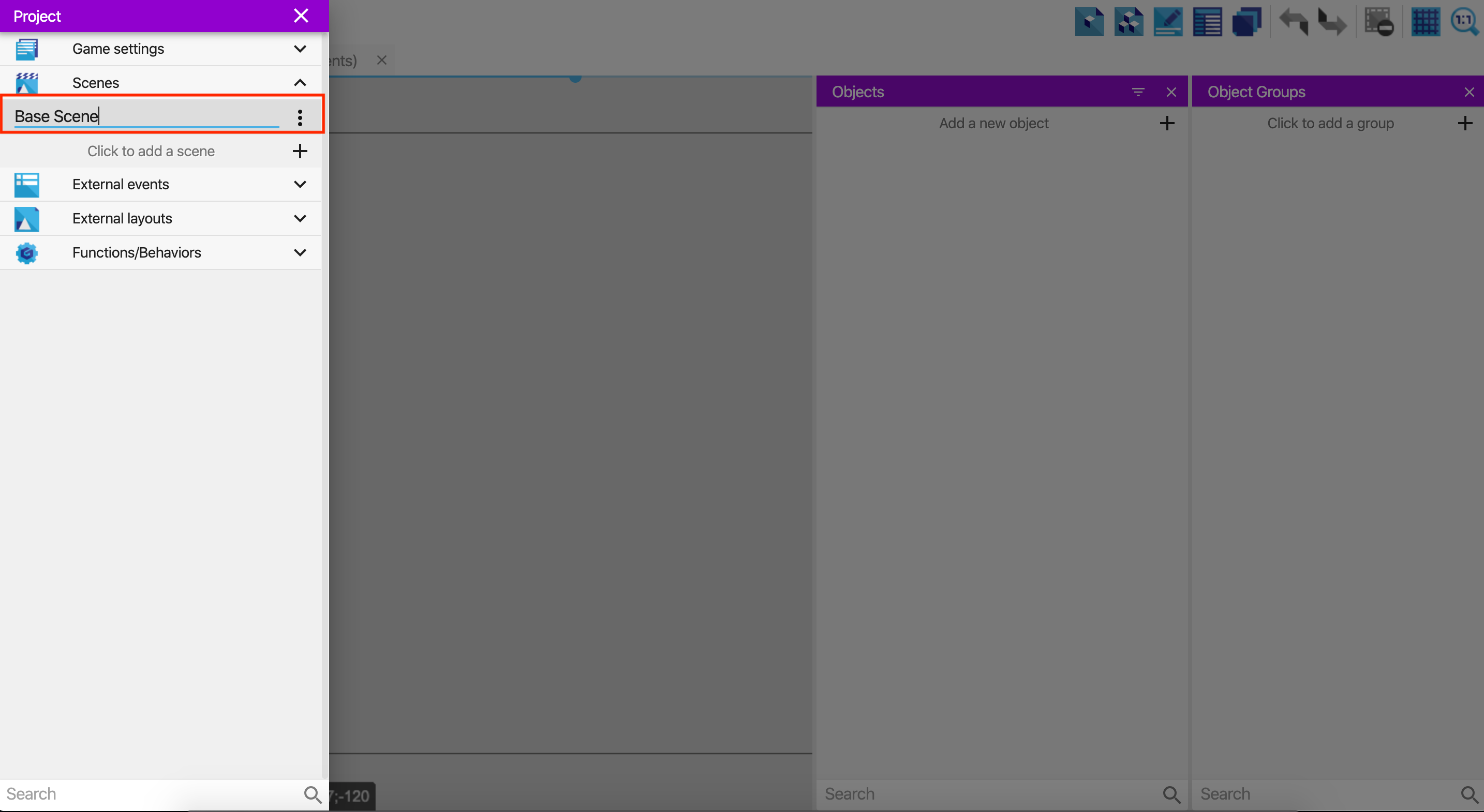 You can rename your scene by right-clicking and selecting Edit. We will call this scene a Base Scene. Then, we will add levels in the incoming sections. This is going to be the base scene for our levels.