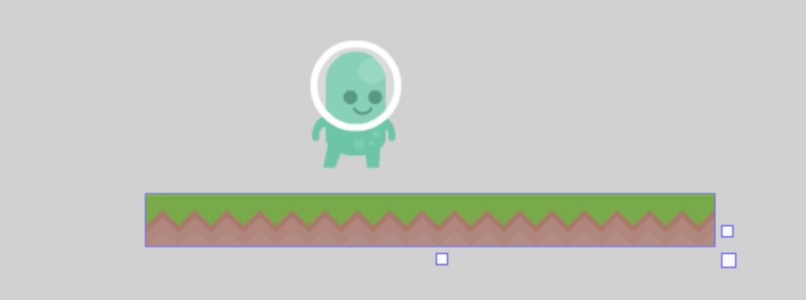 オブジェクトはシーンに追加されますが、非常に小さなものです。それをクリックして、表示されるハンドルを使用して、プレイヤーとのバランスを考慮してサイズを変更します。