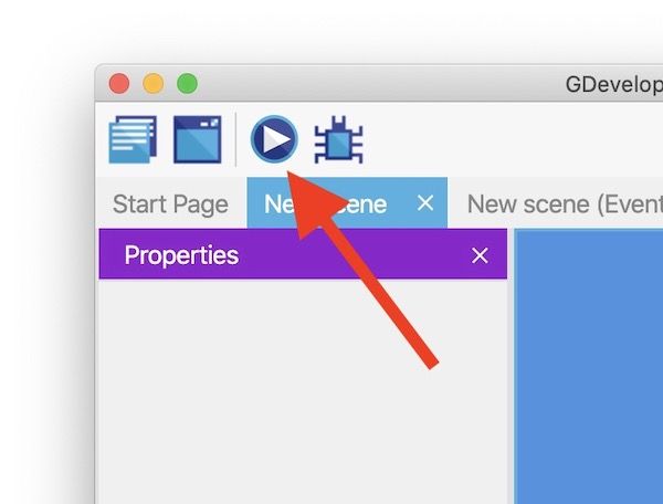 ゲームのプレビューを起動するには、ツールバーのプレビューボタンをクリックします。